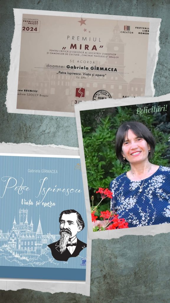 Premiu Biografia „Petre Ispirescu. Viaţa şi opera”, apărută în 2024, la Didactica Publishing House, a fost premiată. Îi mulţumesc juriului pentru că a apreciat această carte.